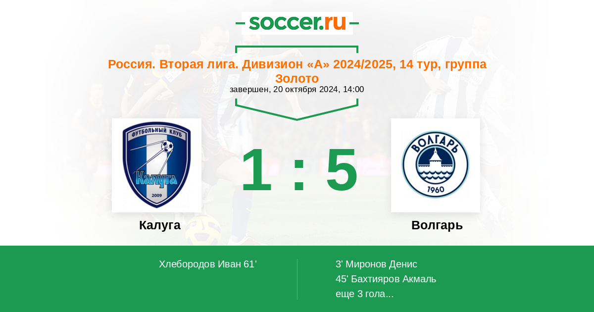 Протокол матча Калуга против Волгарь