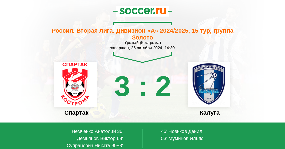 Протокол матча Спартак Кострома против Калуга