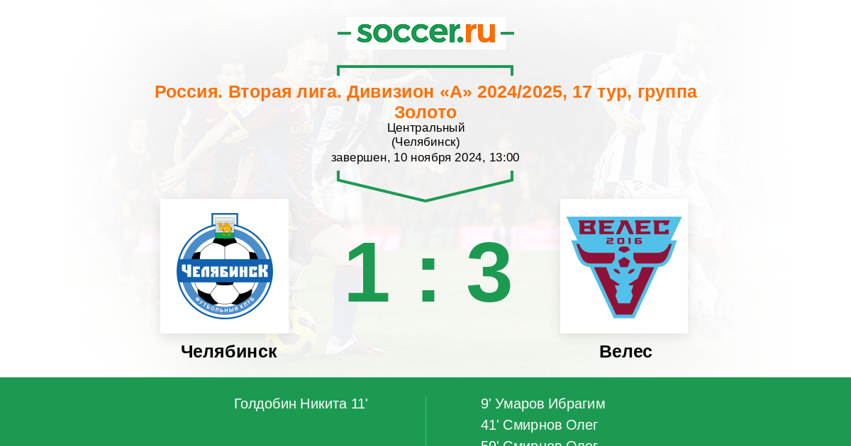 Протокол матча Челябинск против Велес