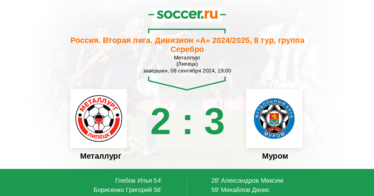 Протокол матча Металлург против Муром
