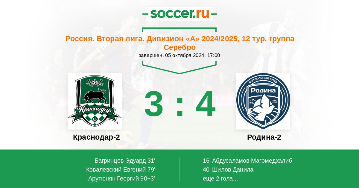 Протокол матча Краснодар-2 против Родина-2