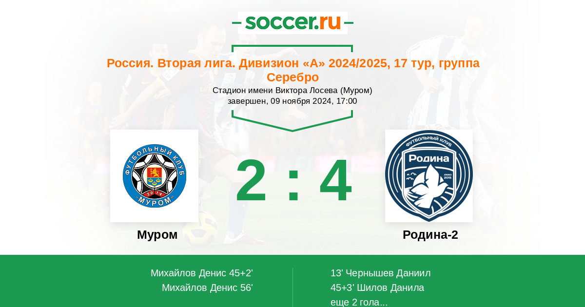 Протокол матча Муром против Родина-2