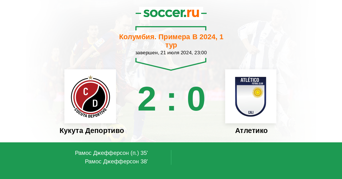 Протокол матча Кукута Депортиво против Атлетико Кали