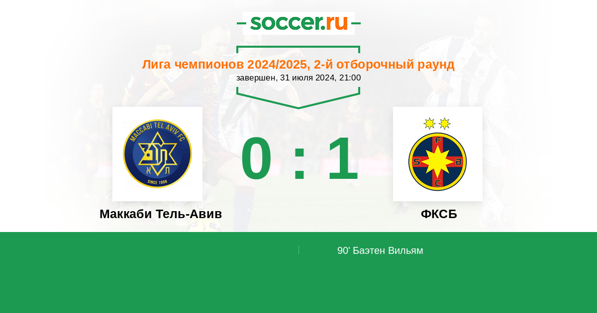 Протокол матча Маккаби Тель-Авив против ФКСБ