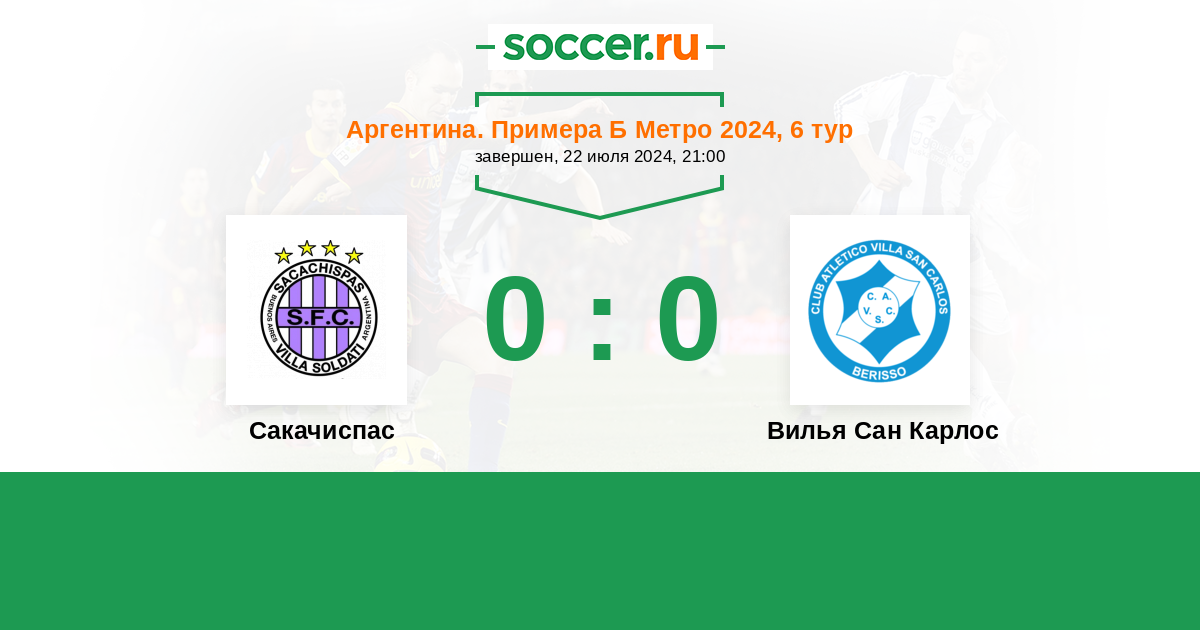 Протокол матча Сакачиспас против Вилья Сан Карлос