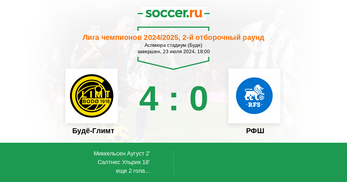 2' (1:0) Миккельсен Аугуст (94) (Салтнес Ульрик (14))
