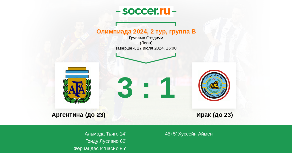Протокол матча Аргентина (до 23) против Ирак (до 23)