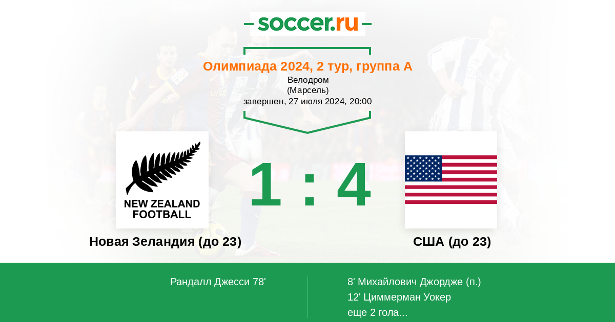 Протокол матча Новая Зеландия (до 23) против США (до 23)