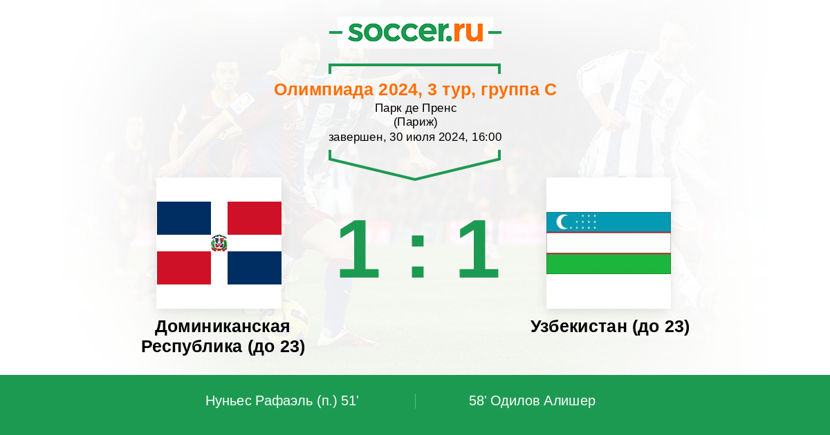 Протокол матча Доминиканская Республика (до 23) против Узбекистан (до 23)