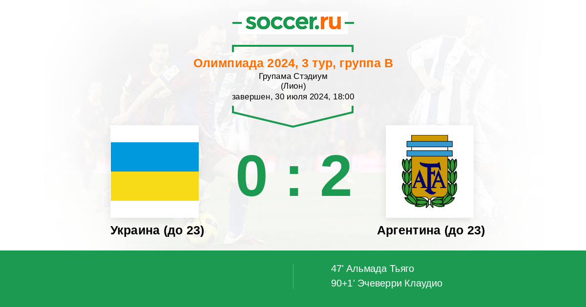 Протокол матча Украина (до 23) против Аргентина (до 23)