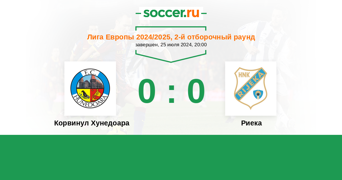 Протокол матча Корвинул Хунедоара против Риека