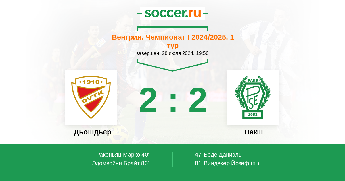 Протокол матча Дьошдьер против Пакш