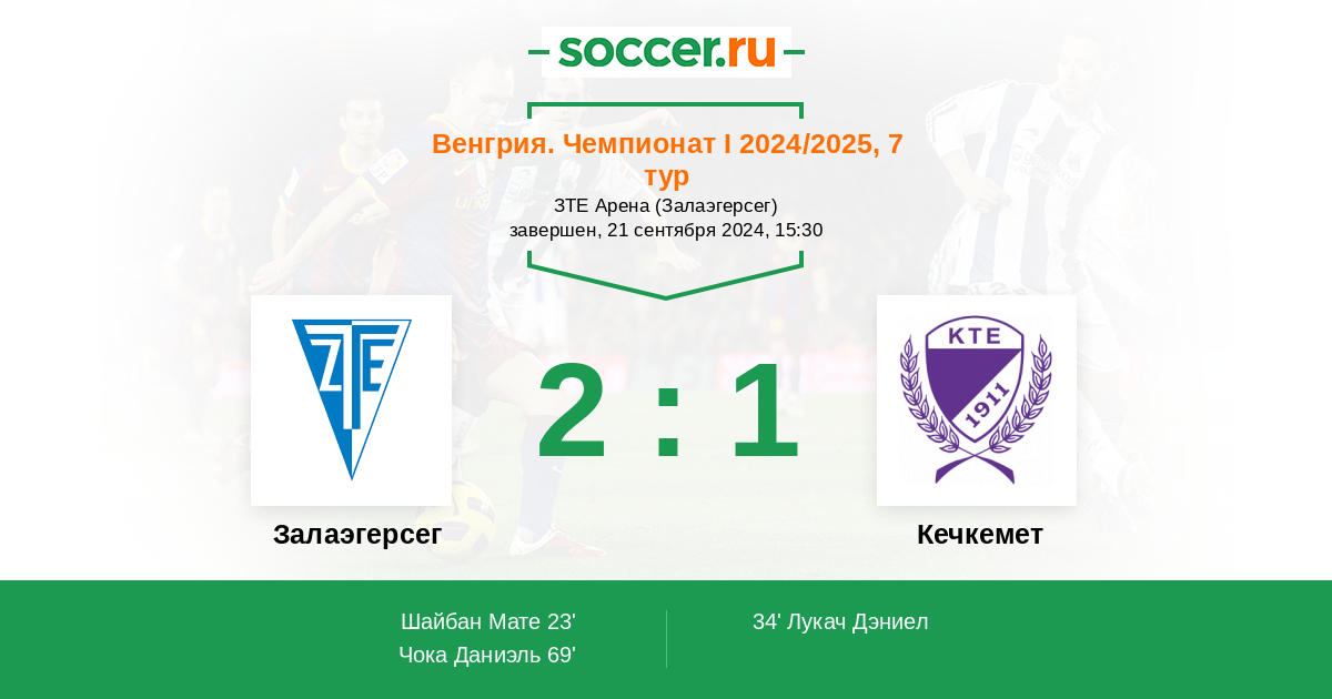 Протокол матча Залаэгерсег против Кечкемет