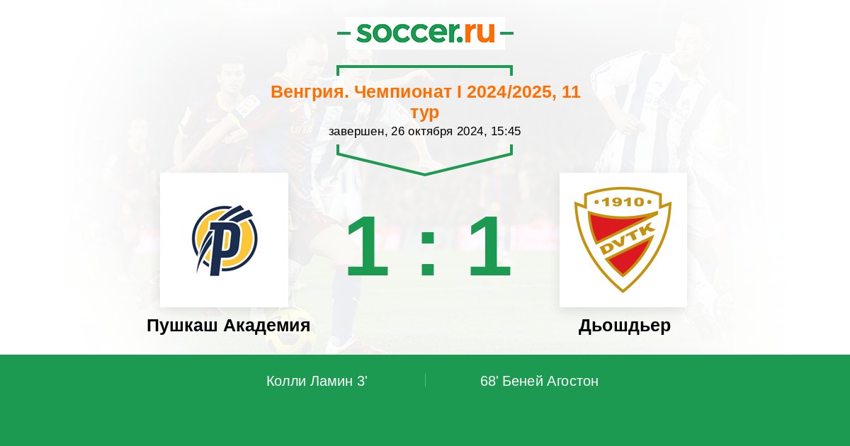 Протокол матча Пушкаш Академия против Дьошдьер