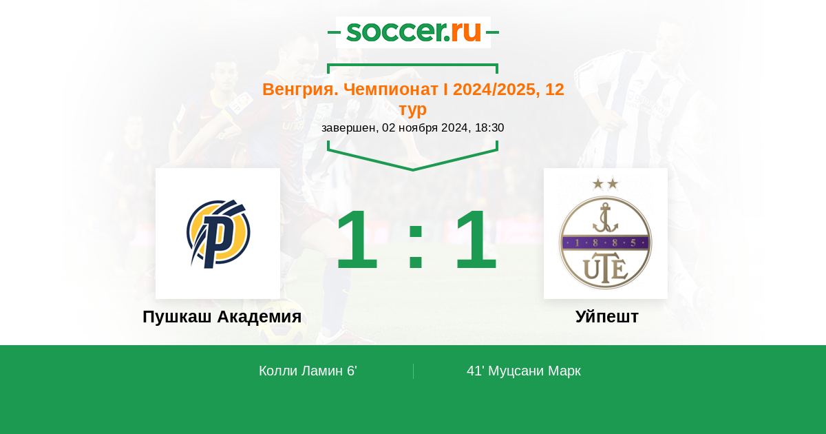 Протокол матча Пушкаш Академия против Уйпешт