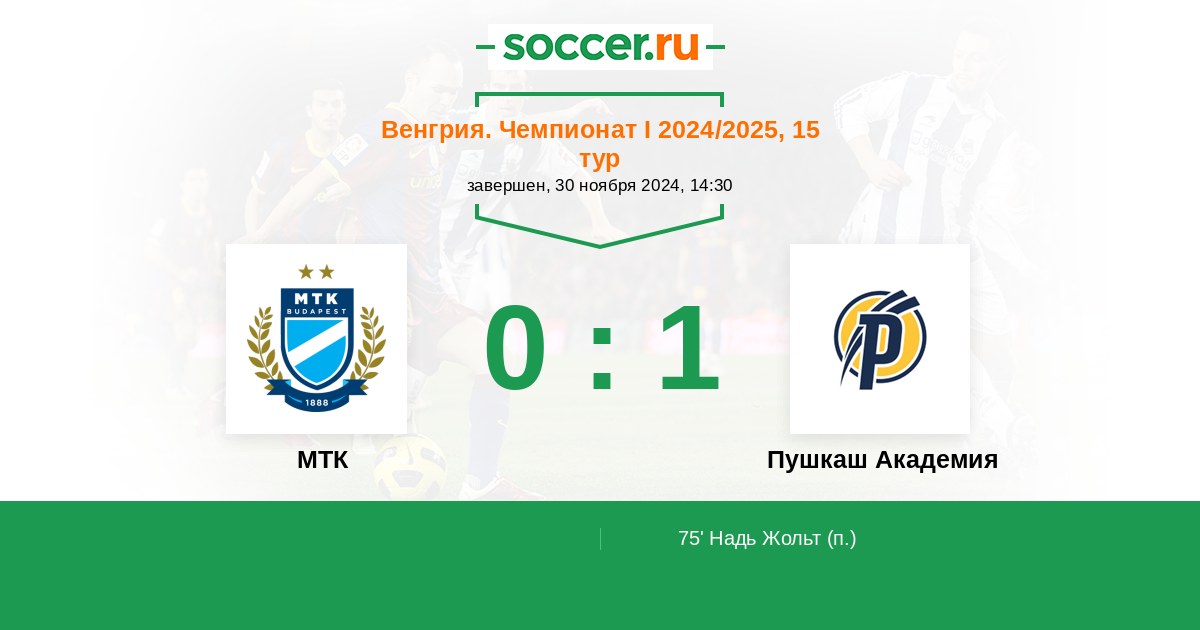 Протокол матча МТК против Пушкаш Академия