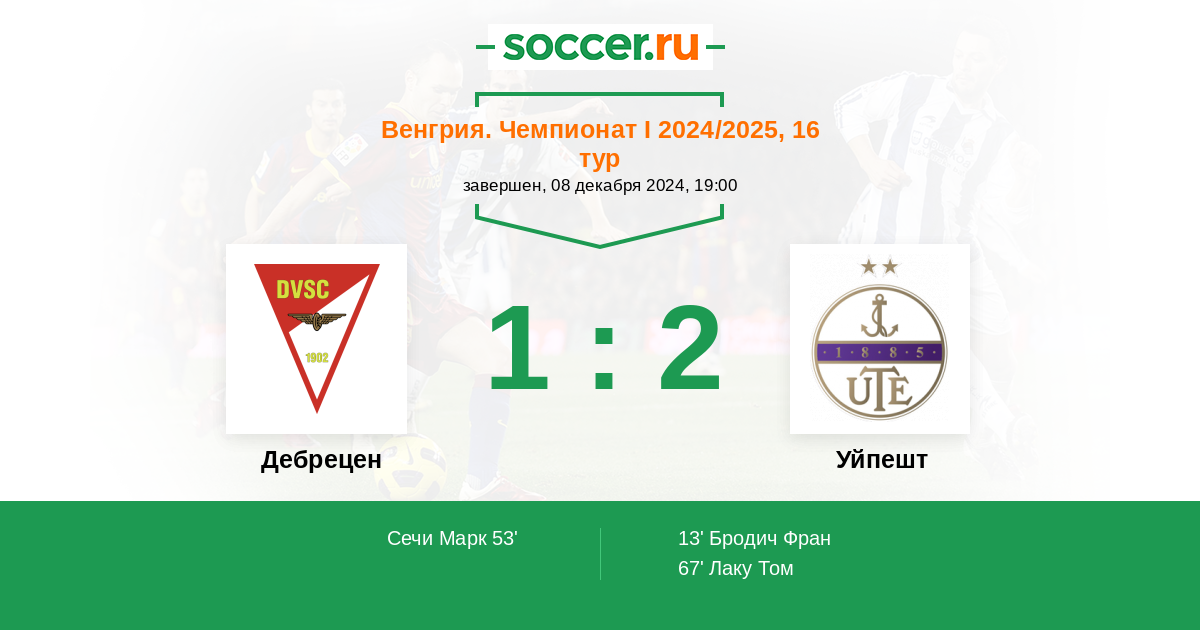Протокол матча Дебрецен против Уйпешт