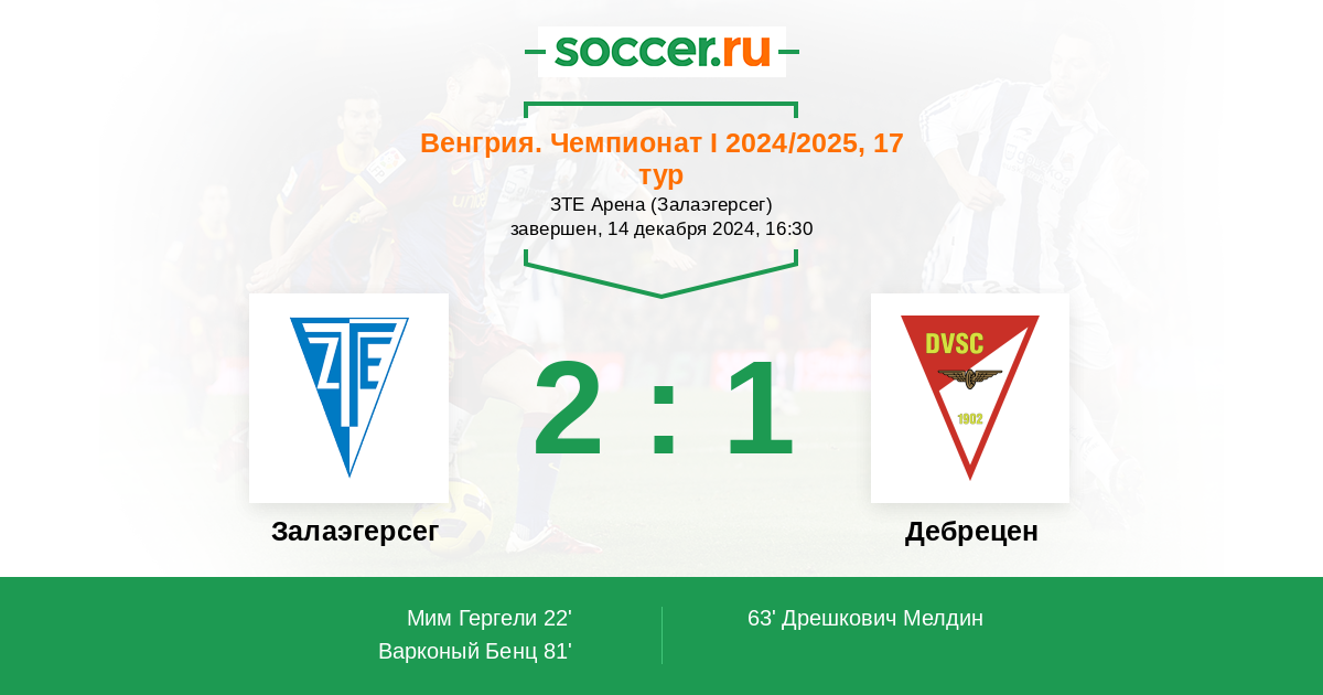 Протокол матча Залаэгерсег против Дебрецен