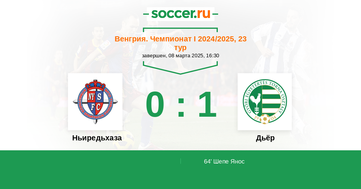 Протокол матча Ньиредьхаза против Дьёр