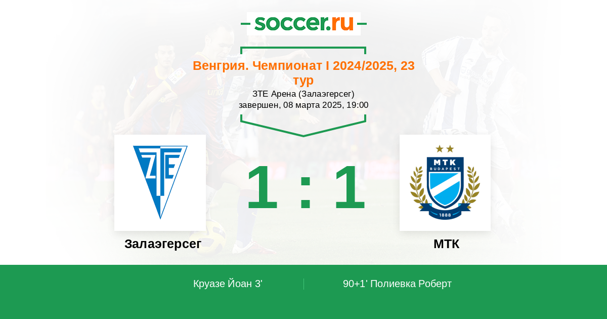 Протокол матча Залаэгерсег против МТК