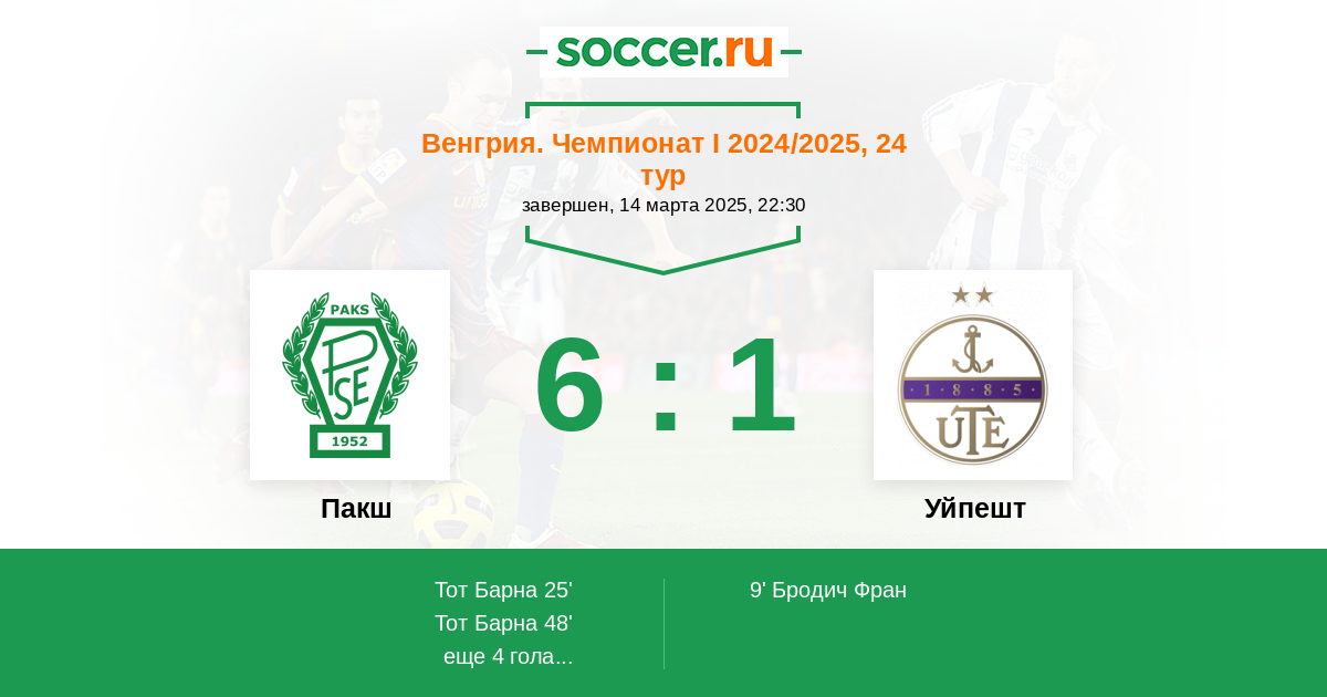 Протокол матча Пакш против Уйпешт