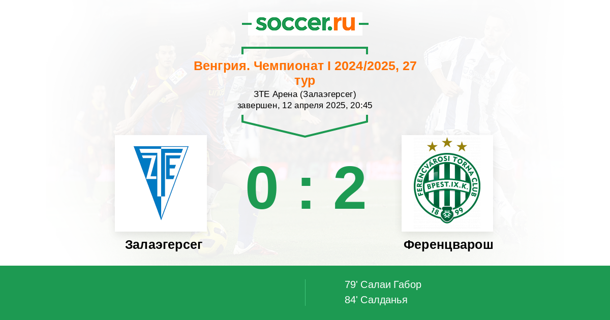 Протокол матча Залаэгерсег против Ференцварош