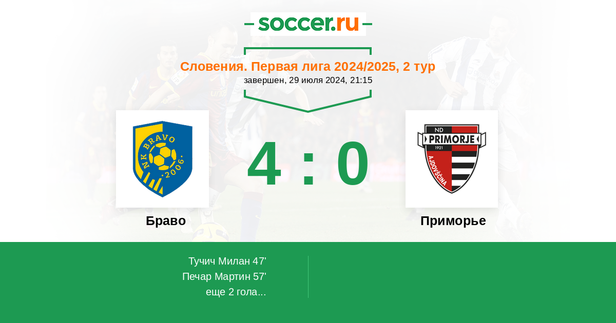 Протокол матча Браво против Приморье