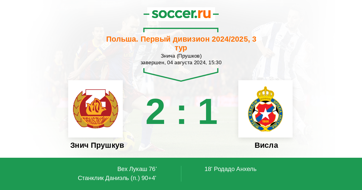 Протокол матча Знич Прушкув против Висла