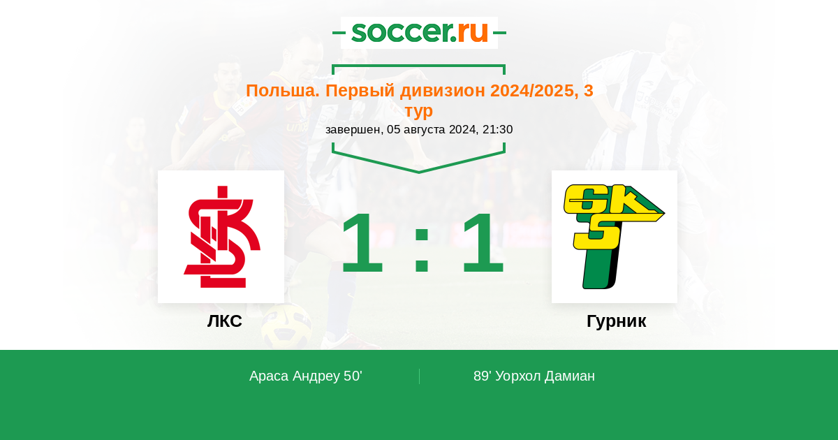 Протокол матча ЛКС против Гурник