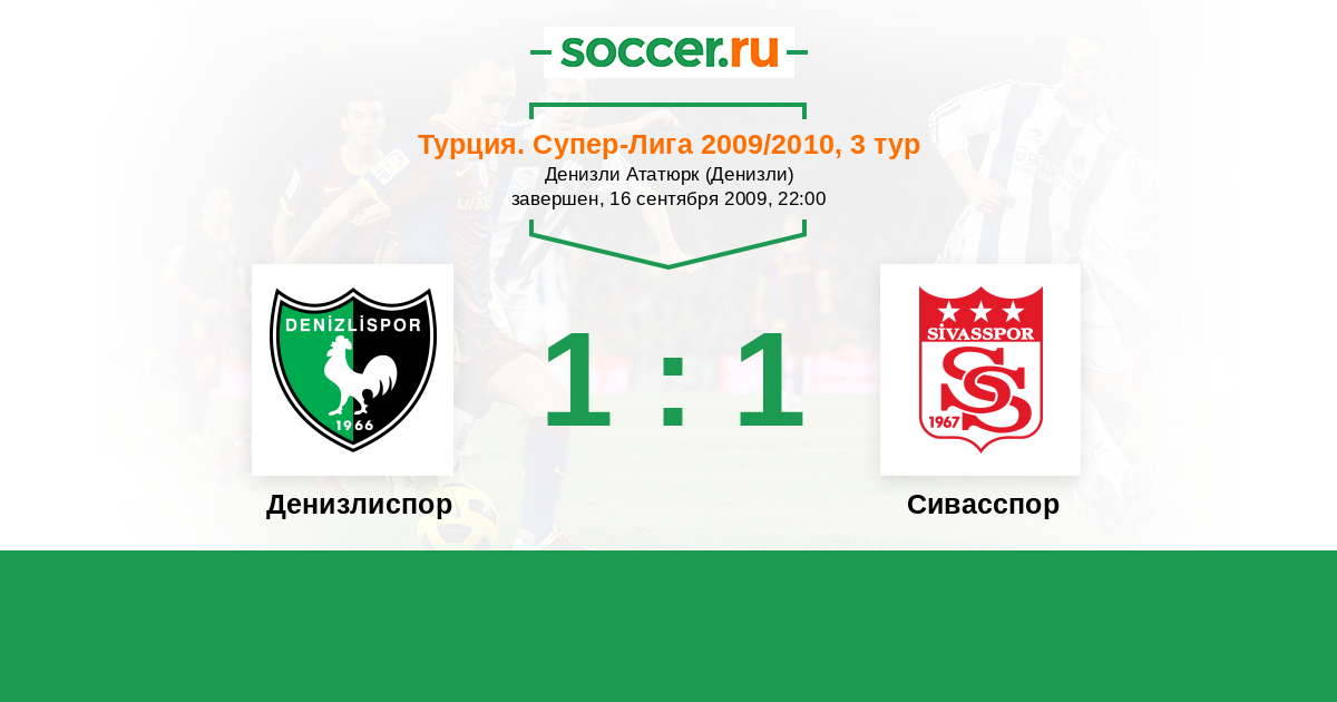 Турция. Суперлига 04.04.2009 Денизлиспор Логотип футбольный клуб Денизлиспор 0:2 Логотип футбольный клуб Сивасспор Сивасспор