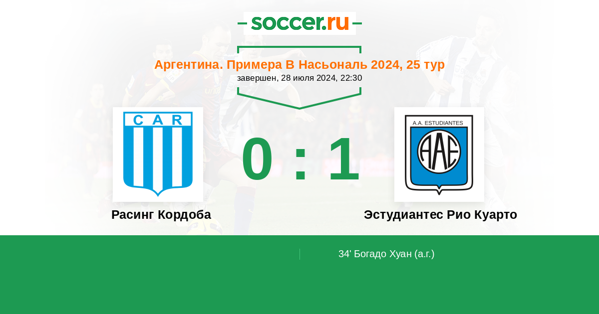 Протокол матча Расинг Кордоба против Эстудиантес Рио Куарто