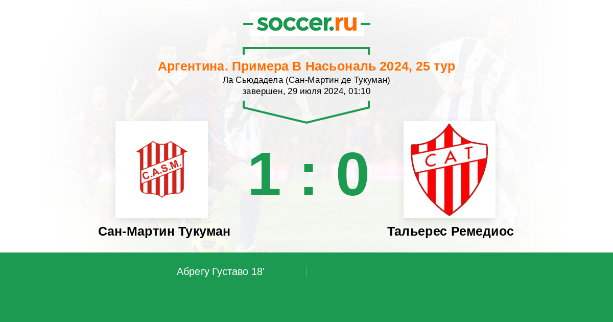 Протокол матча Сан-Мартин Тукуман против Тальерес Ремедиос