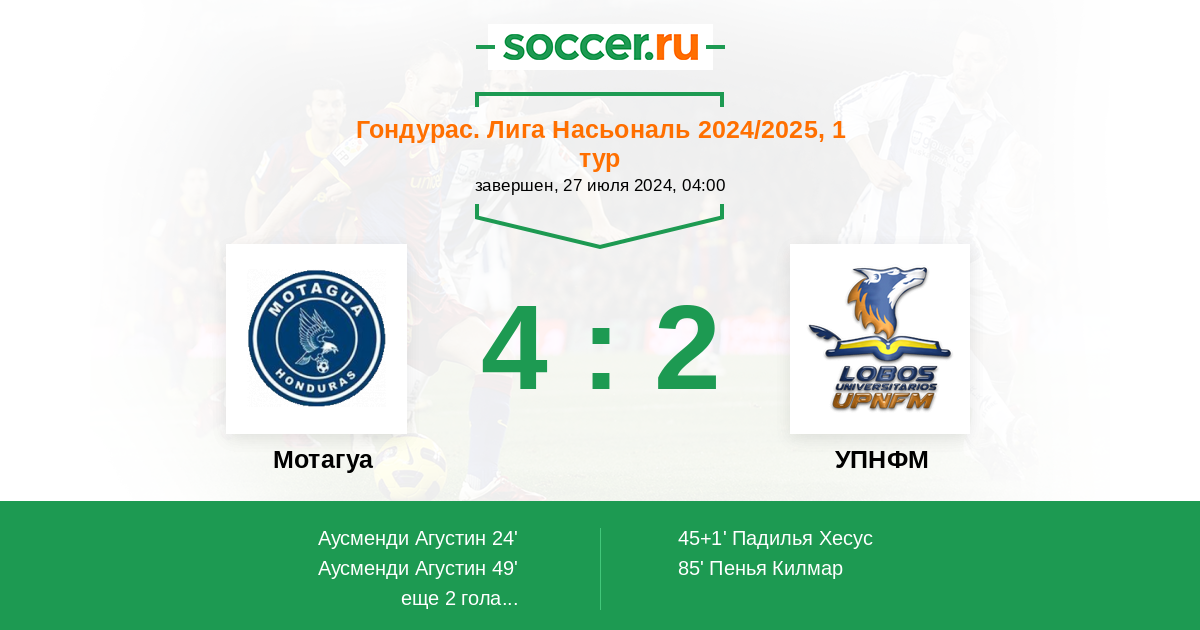 Протокол матча Мотагуа против УПНФМ