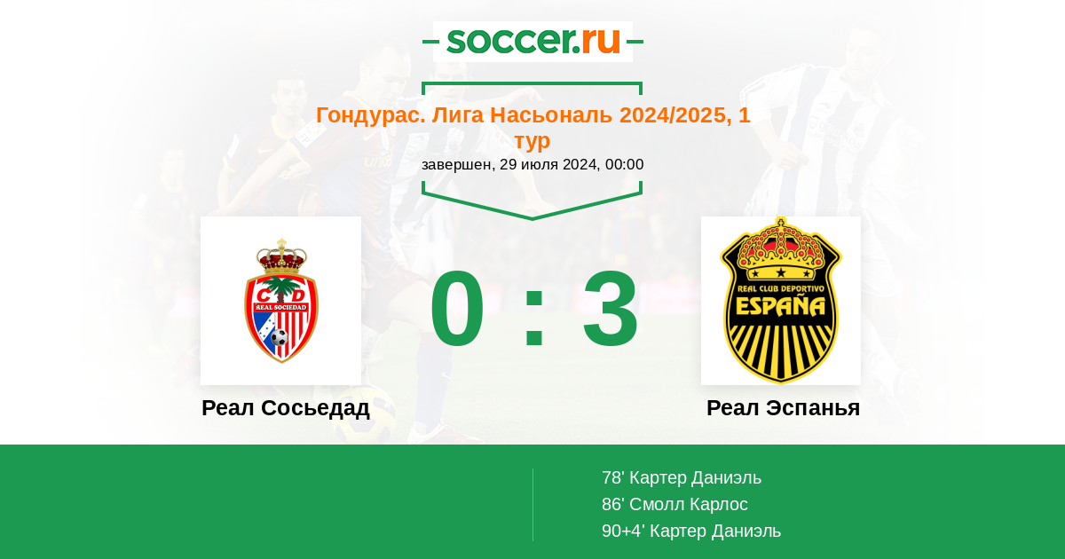 Протокол матча Реал Сосьедад против Реал Эспанья