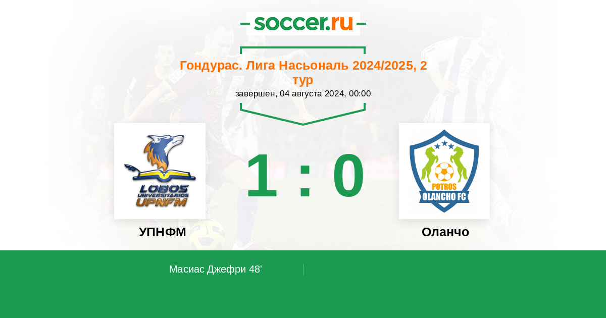 Протокол матча УПНФМ против Оланчо
