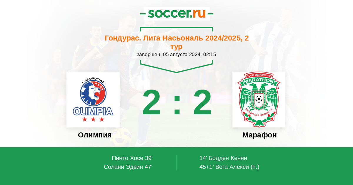 Протокол матча Олимпия против Марафон