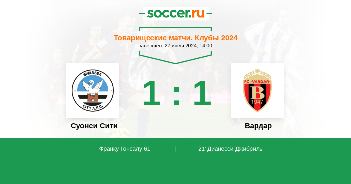 Протокол матча Суонси Сити против Вардар