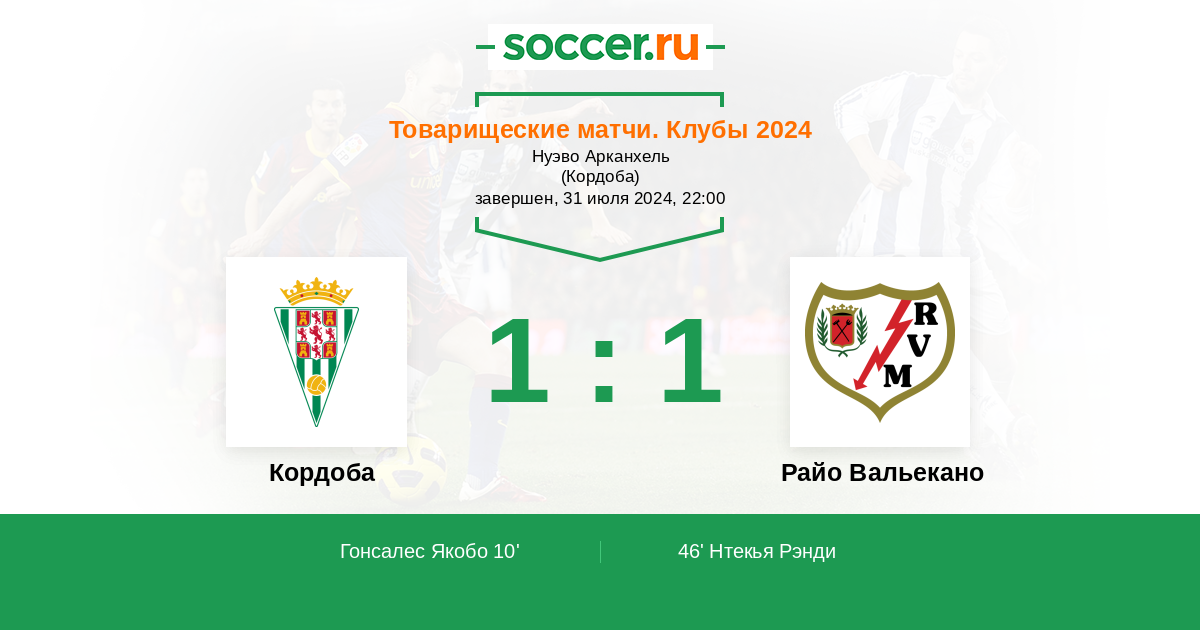 Протокол матча Кордоба против Райо Вальекано
