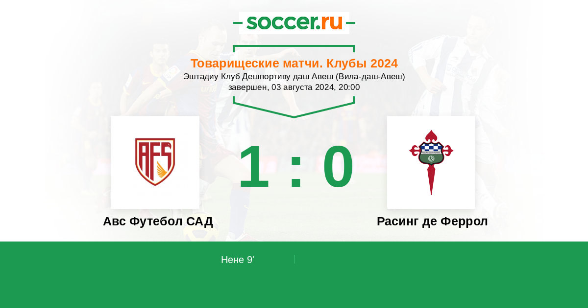 Протокол матча Авс Футебол САД против Расинг де Феррол