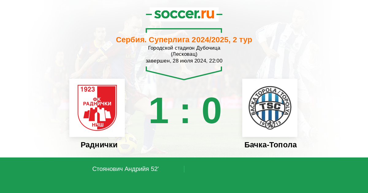 Протокол матча Раднички против Бачка-Топола