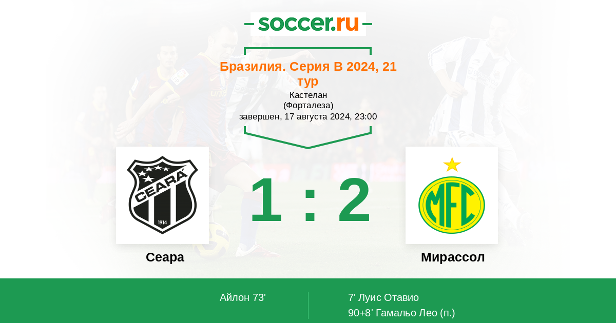 Протокол матча Сеара против Мирассол