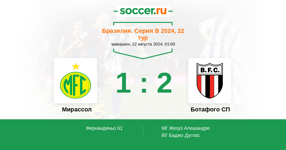 Протокол матча Мирассол против Ботафого СП