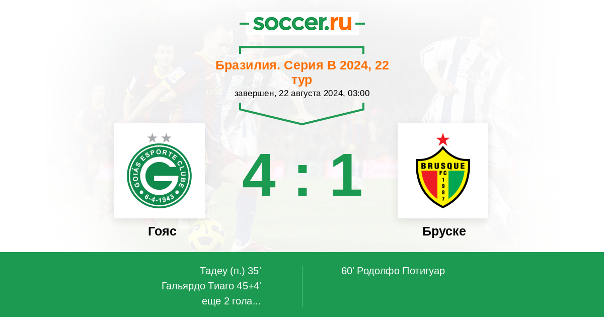 Протокол матча Гояс против Бруске