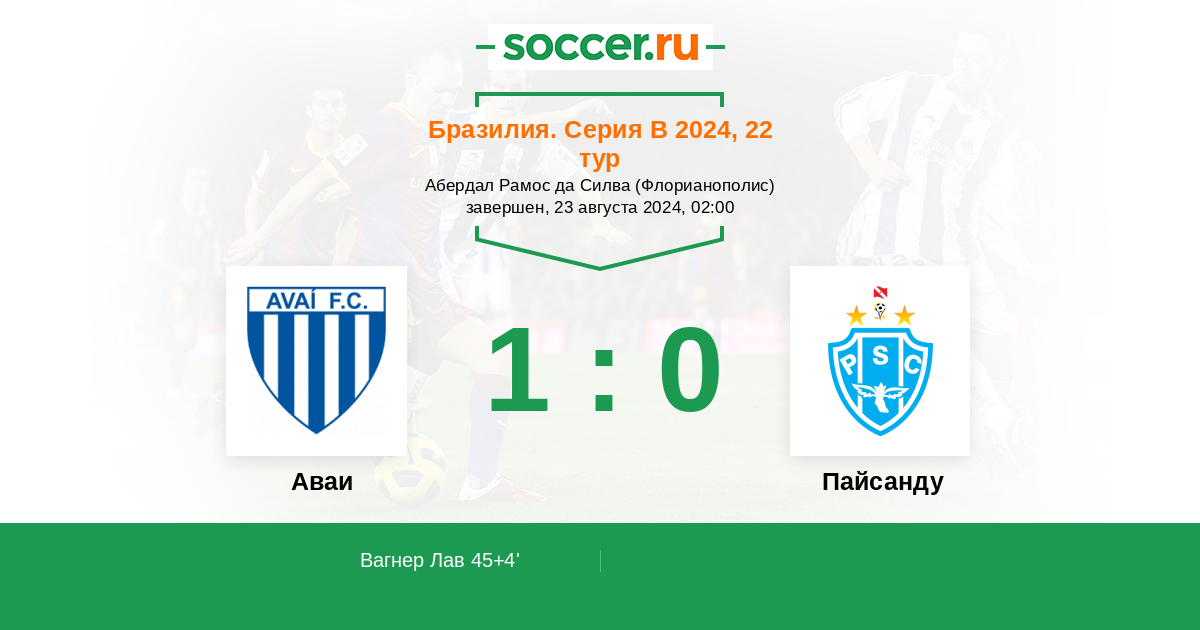 Протокол матча Аваи против Пайсанду