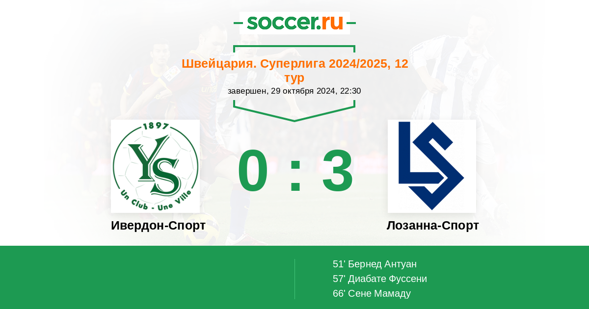 Протокол матча Ивердон-Спорт против Лозанна-Спорт