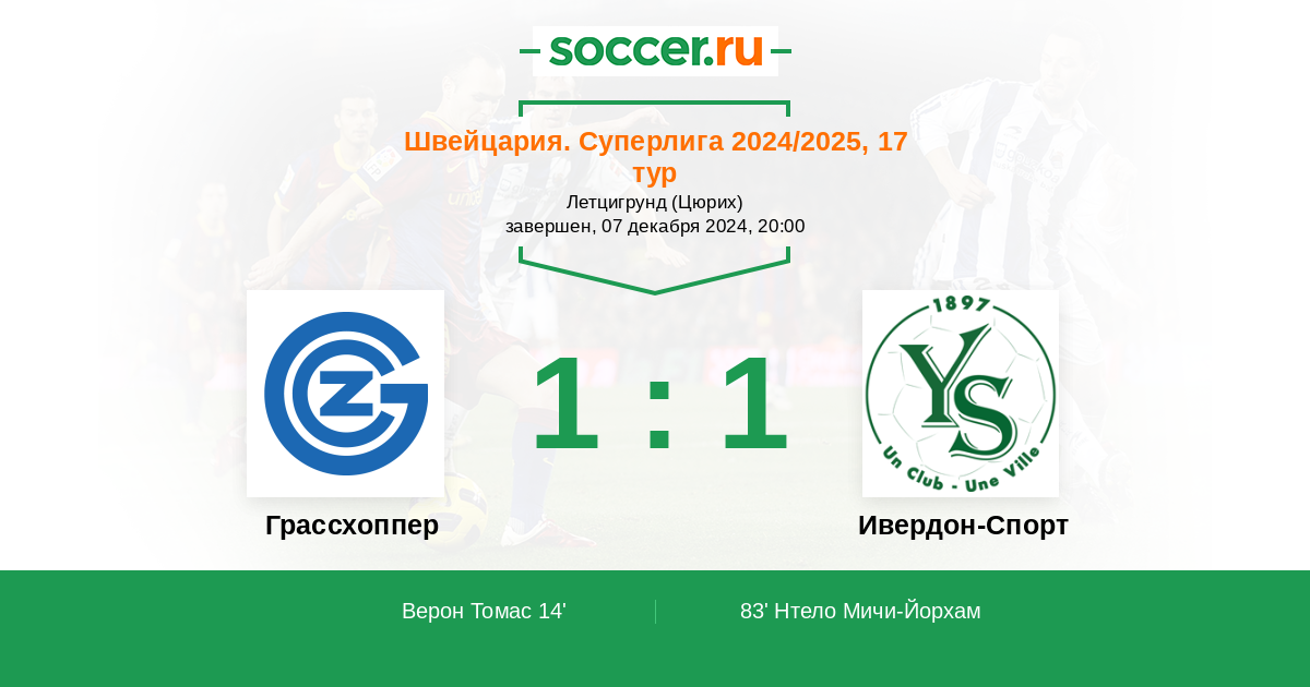 Протокол матча Грассхоппер против Ивердон-Спорт