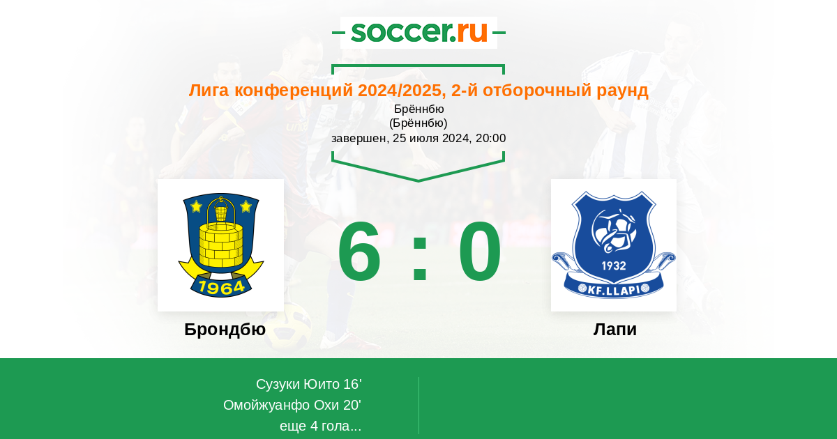 Протокол матча Брондбю против Лапи
