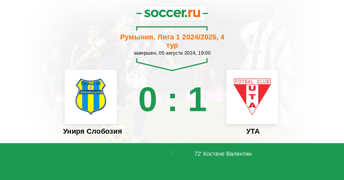 Протокол матча Униря Слобозия против УТА