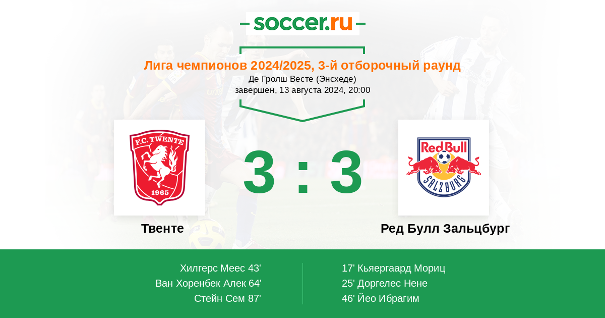 Протокол матча Твенте против Ред Булл Зальцбург