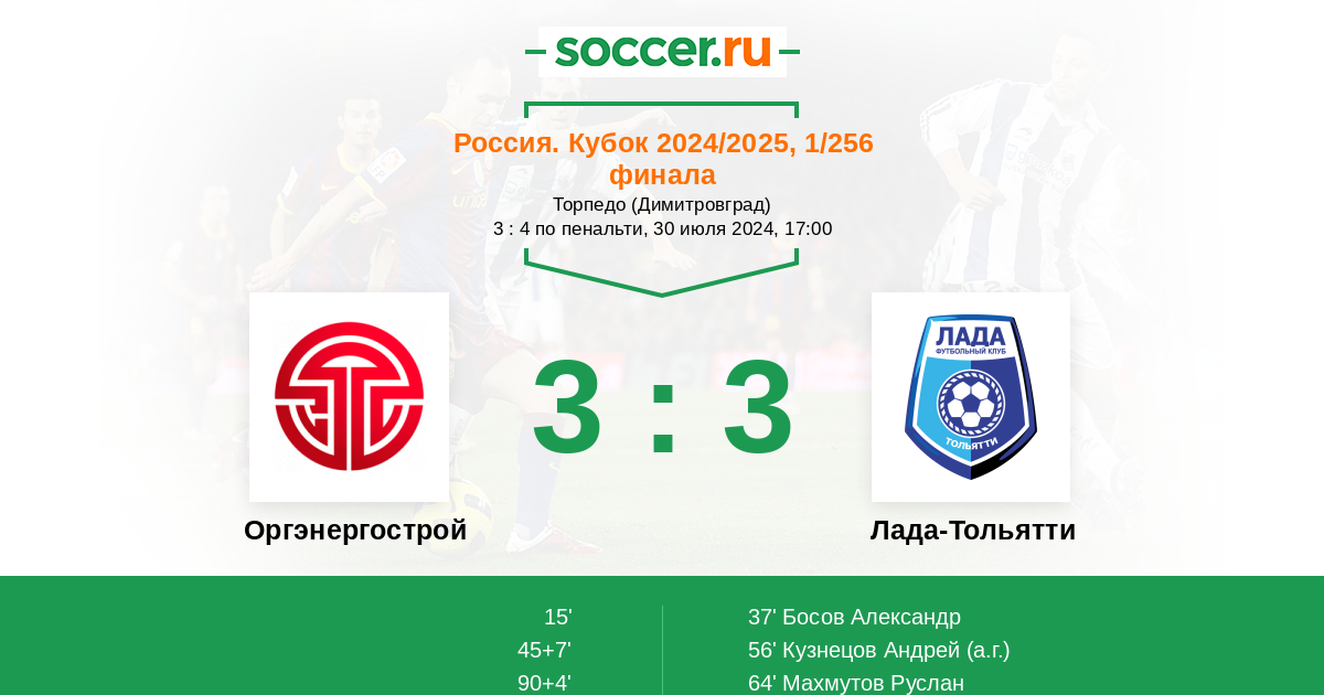 Протокол матча Оргэнергострой против Лада-Тольятти